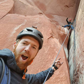 Med sele og tau har Håkon fartet på kryss og tvers via klatredestinasjoner i Europa de siste 15 årene. Klatringen har også tatt han til klipper og fjell i USA, Patagonia, Canada og Kina.